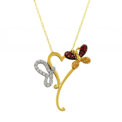 Altın Kolye Modelleri modellerinden Kelebekli Kalp Altın Kolye KLF1105 ürünümüz,