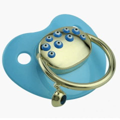Altın Çocuk Takıları modellerinden Mavi Nazar Boncuklu Altın Emzik ürünümüz,