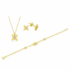 Taşlı Üçlü Set Takım Modelleri modellerinden Minik Altın Kolye Bileklik Küpe Set ürünümüz, 6.00 gr ağırlığında 14 Ayar Altın.