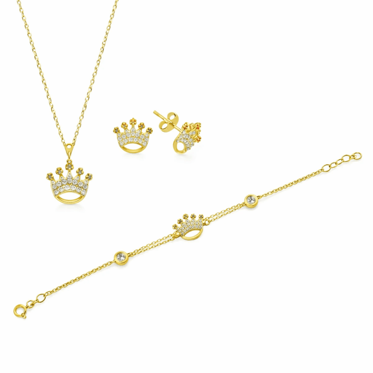 Taşlı Üçlü Set Takım Modelleri modellerinden Minik Taç Figürlü Altın Takım ürünümüz,5.98 gr ağırlığında 14 Ayar Altın.