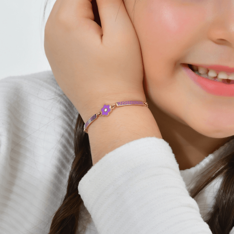 Altın Çocuk Takıları modellerinden Mor Papatya Çocuk Bilezik ürünümüz,