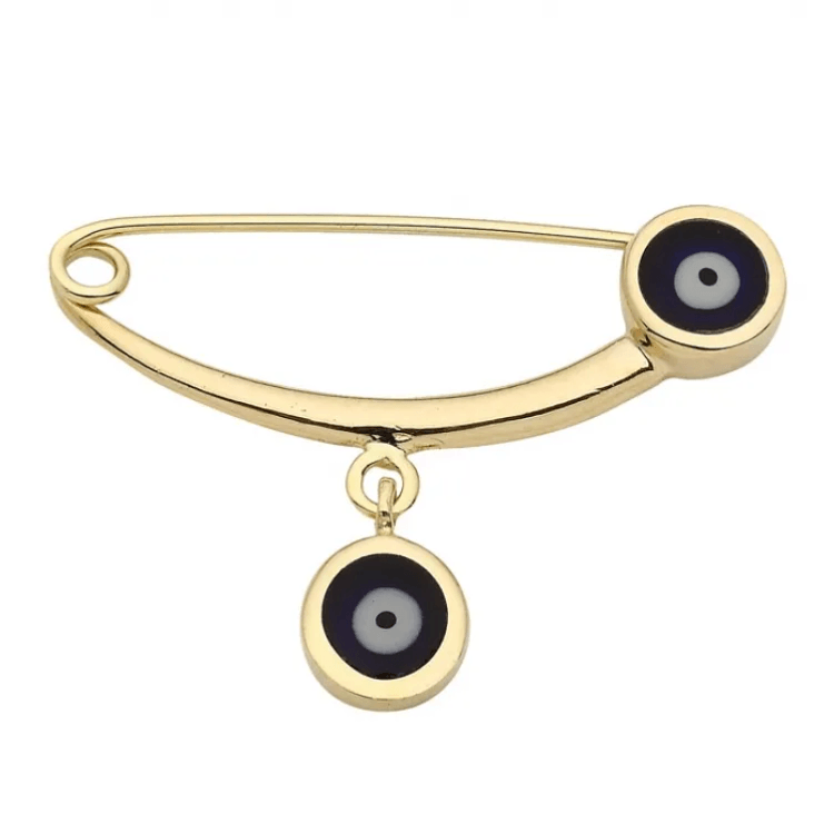 Altın Çocuk Takıları modellerinden Nazar Boncuklu Altın İğne ürünümüz,