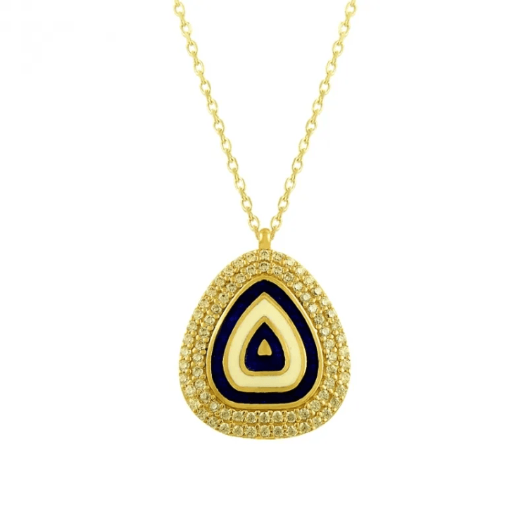 Altın Kolye Modelleri modellerinden Nazar Boncuklu Sıra Taşlı Altın Kolye KLF1271 ürünümüz,