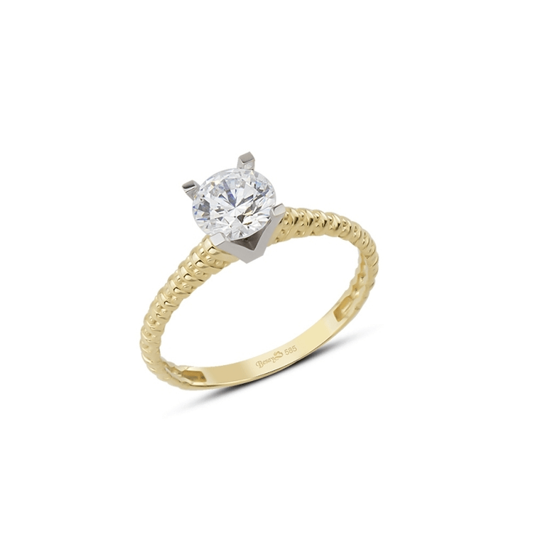Altın Yüzükler modellerinden Örgü Desenli Altın Tektaş Yüzük ürünümüz,