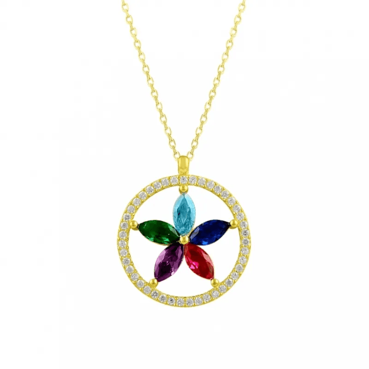 Altın Kolye Modelleri modellerinden Renkli Çicek Motifli Altın Kolye ürünümüz,