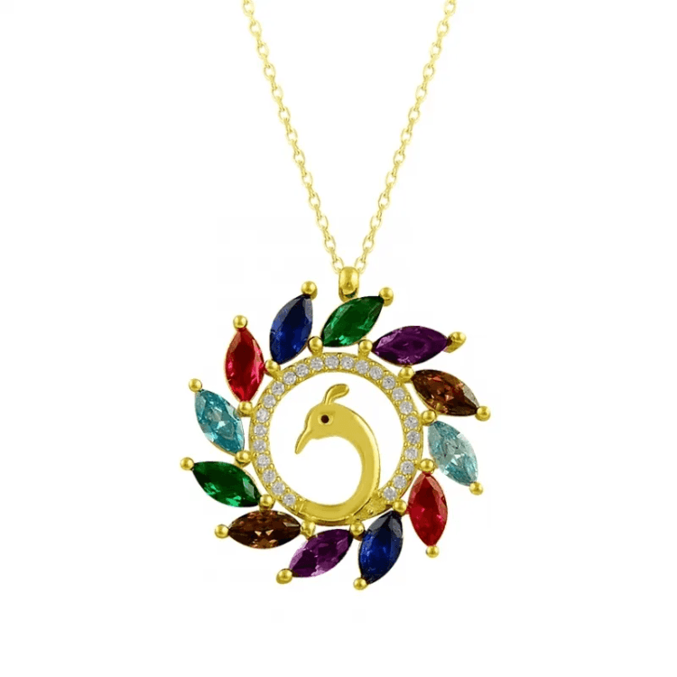 Altın Kolye Modelleri modellerinden Renkli Tavus Kuşu Altın Kolye ürünümüz,