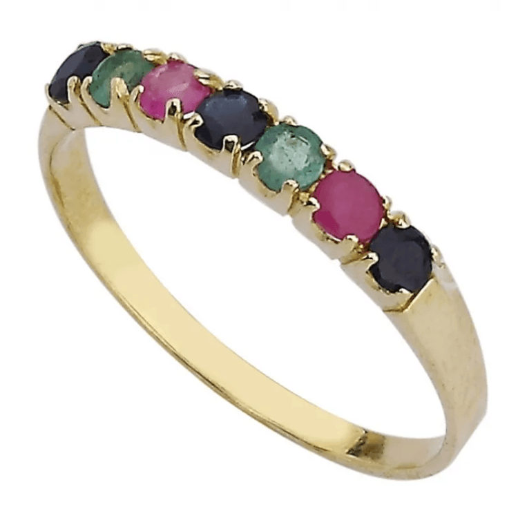 Altın Anneler Günü Hediyeleri modellerinden Renkli Yeditaş Altın Yüzük ürünümüz,