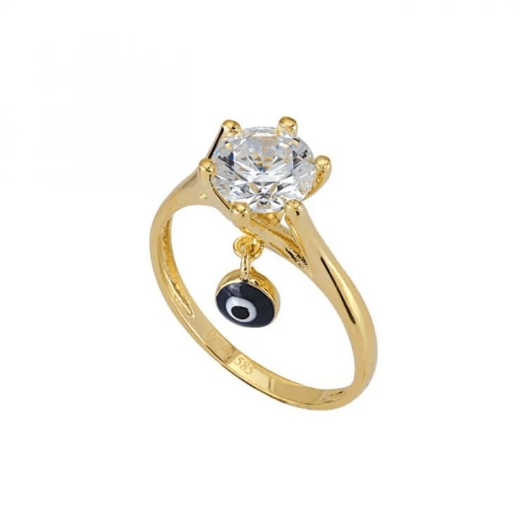 Altın Yüzükler modellerinden Sallanan Nazarlık Tektaş Yüzük ürünümüz,