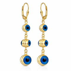 Altın Küpe Modelleri ve Fiyatları modellerinden Sallanan Üç Göz Boncuk Altın Küpe ürünümüz,