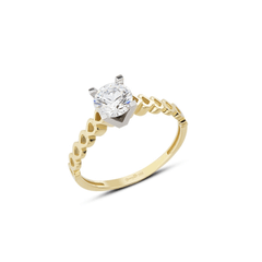 Altın Yüzükler modellerinden Sıralı Kalp Oymalı Tektaş Yüzük ürünümüz,