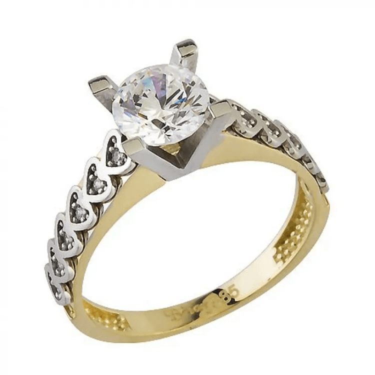 Altın Yüzükler modellerinden Sırataşlı Kalp Kabartmalı Tektaş Yüzük ürünümüz,