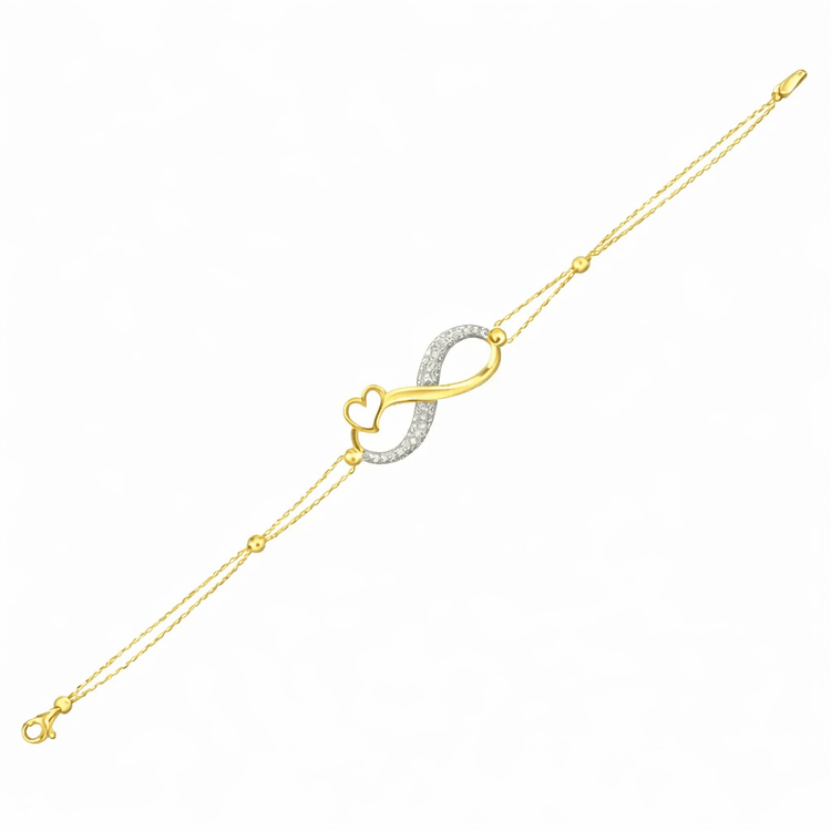 Altın Bileklik Modelleri modellerinden Sonsuzluk Üzerinde Kalp Bileklik ürünümüz,