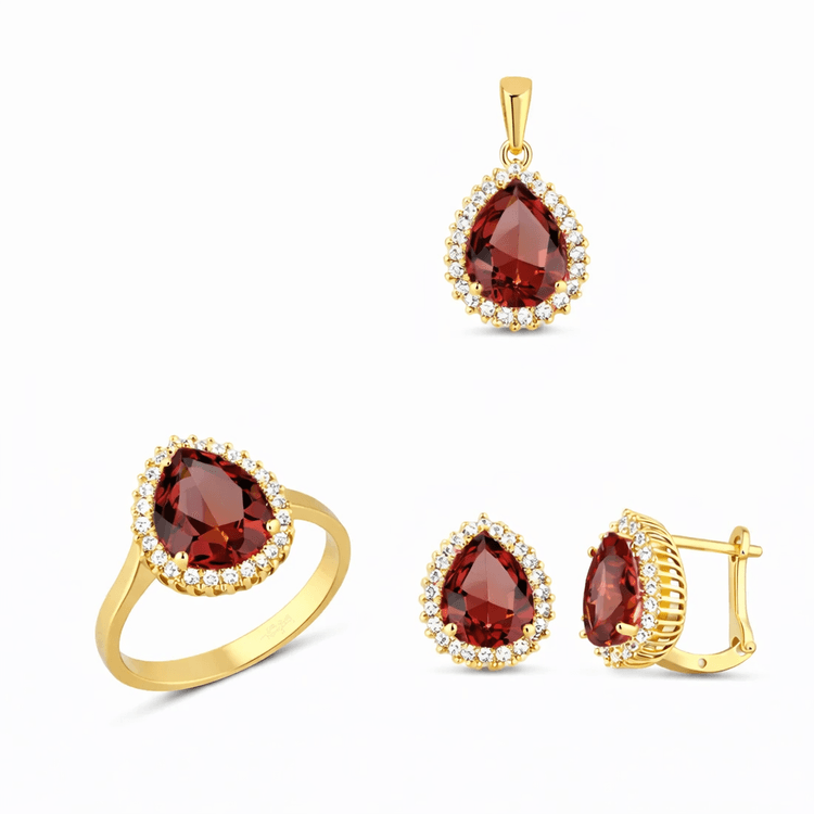Taşlı Üçlü Set Takım Modelleri modellerinden Sultanite Taş Damla Altın Takım ürünümüz, 11.10 gr ağırlığında 14 Ayar Altın.