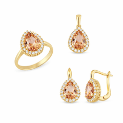 Taşlı Üçlü Set Takım Modelleri modellerinden Sultanite Taş Damla Taşlı Altın Takım ürünümüz,