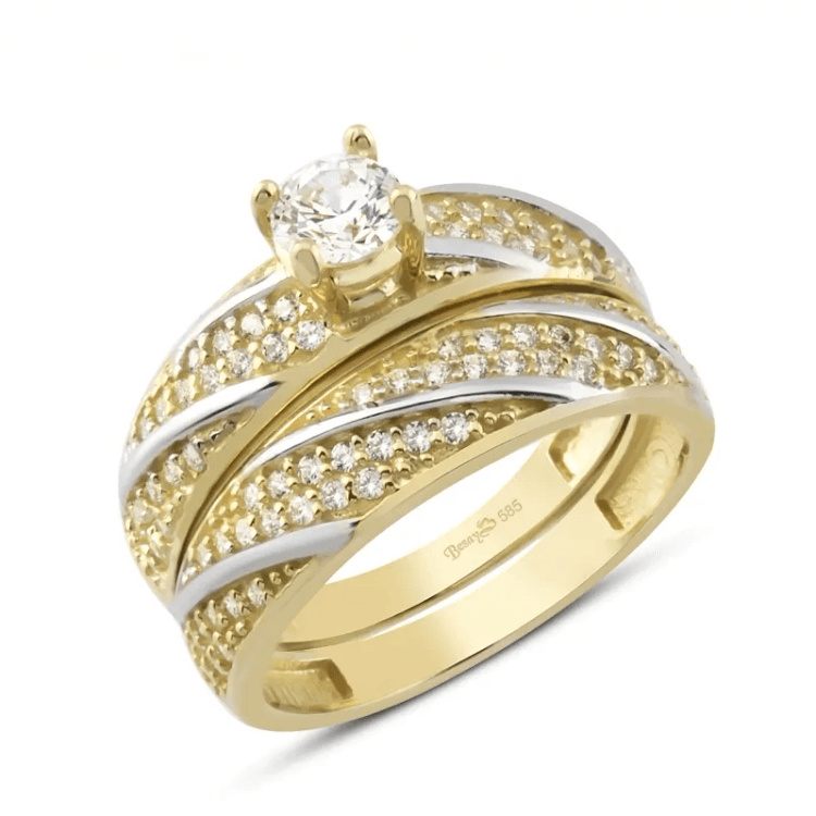 Altın Yüzükler modellerinden Taş İşlemeli Çiftli Yüzük ürünümüz,