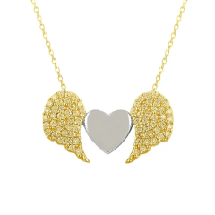 Altın Kolye Modelleri modellerinden Taşlı Kanatlı Kalp Altın Kolye KLF1336 ürünümüz,