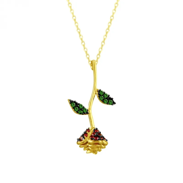 Altın Kolye Modelleri modellerinden Taşlı Kırmızı Gül Kolye ürünümüz,