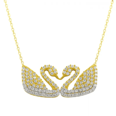 Altın Kolye Modelleri modellerinden Taşlı Kuğular Altın Kolye ürünümüz,