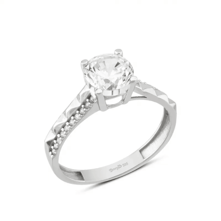 Altın Yüzükler modellerinden Tektaş Beyaz Altın Tablet Kesim ürünümüz,