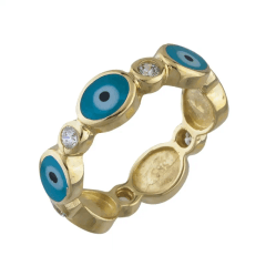Altın Yüzükler modellerinden Turkuaz Mineli Göz Yüzük ürünümüz,