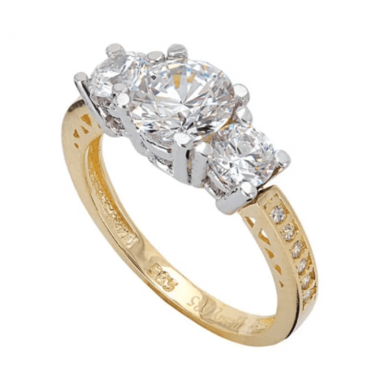 Altın Yüzükler modellerinden Yanları Taşlı Üç Taş Yüzük ürünümüz,