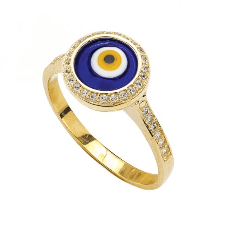Altın Yüzükler modellerinden Yanları Tektaşlı Göz Boncuklu Altın Yüzük ürünümüz,
