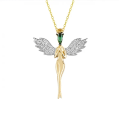 Altın Kolye Modelleri modellerinden Yeşil Taşlı Melek Kız Kolye ürünümüz,