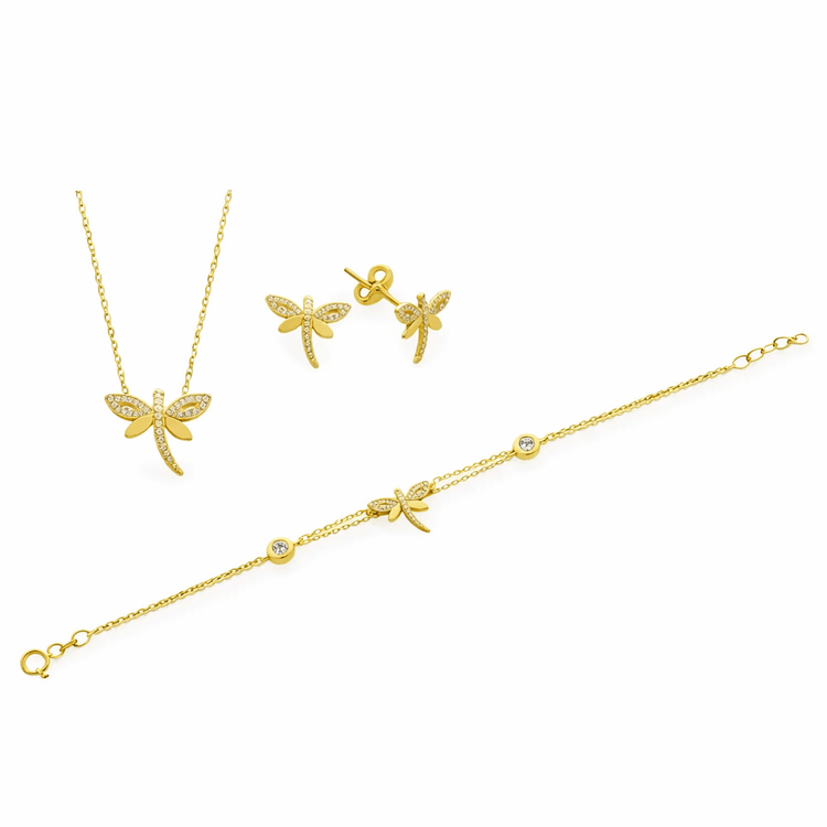 Taşlı Üçlü Set Takım Modelleri modellerinden Yusufcuk Kolye Bileklik Küpe Set ürünümüz, 6.69 gr ağırlığında 14 Ayar Altın.