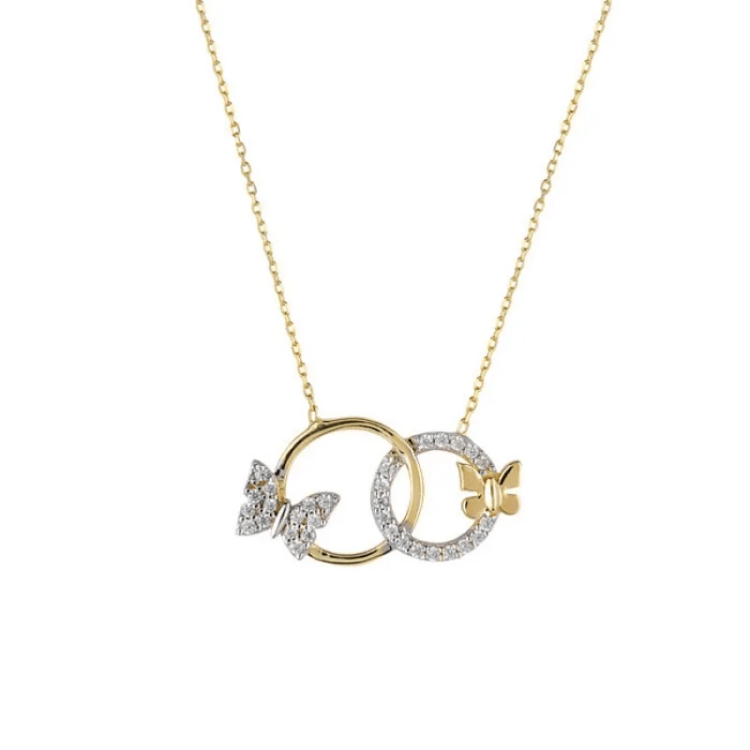 Altın Kolye Modelleri modellerinden 2 Alyans üzerinde Kelebekler Kolye ürünümüz,