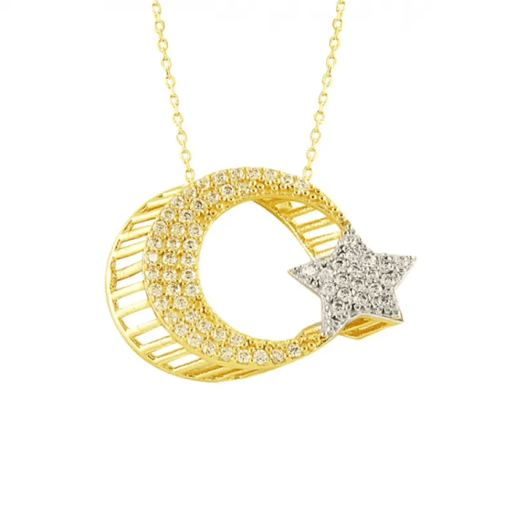 Altın Kolye Modelleri modellerinden 3 Boyutlu Ayyıldız Altın Kolye ürünümüz,