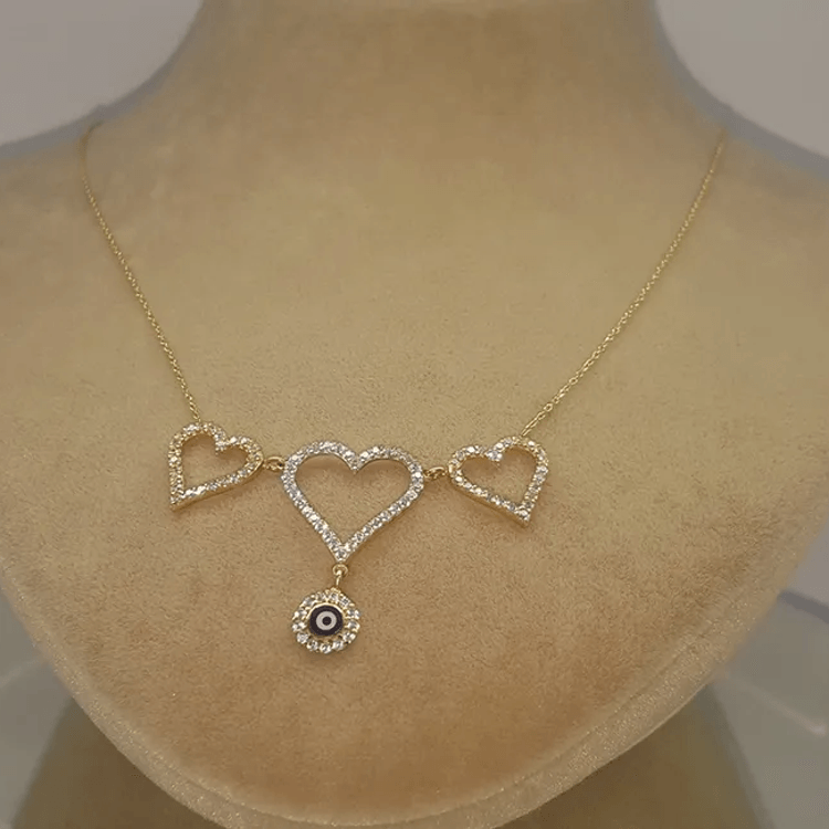 Altın Kolye Modelleri modellerinden 3 Kalp Yanyana Altın Kolye ürünümüz,