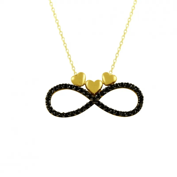 Altın Kolye Modelleri modellerinden 3 Kalpli Siyah Sonsuzluk Altın Kolye ürünümüz,