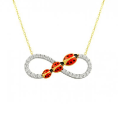 Altın Kolye Modelleri modellerinden 3 Uğur Böcekli Sonsuzluk Altın Kolye ürünümüz,