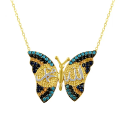 Altın Kolye Modelleri modellerinden Allah Muhammet Kelebek Altın Kolye KLF1304 ürünümüz,