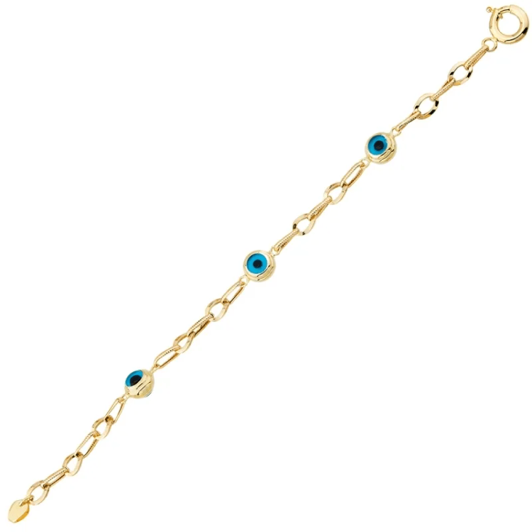 Altın Bileklik Modelleri modellerinden Altın Bileklik Üç Göz Boncuklu Kalın ürünümüz, 5.43 gr ağırlığında 14 Ayar Altın.