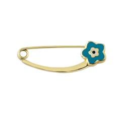 Altın Çocuk Takıları modellerinden Altın Çiçek Mavi İğne ürünümüz,
