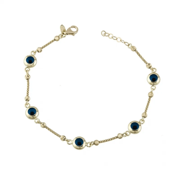 Altın Bileklik Modelleri modellerinden Altın Göz Boncuklu Toplu Bileklik GBB065 ürünümüz, 4.47 gr ağırlığında 14 Ayar Altın.
