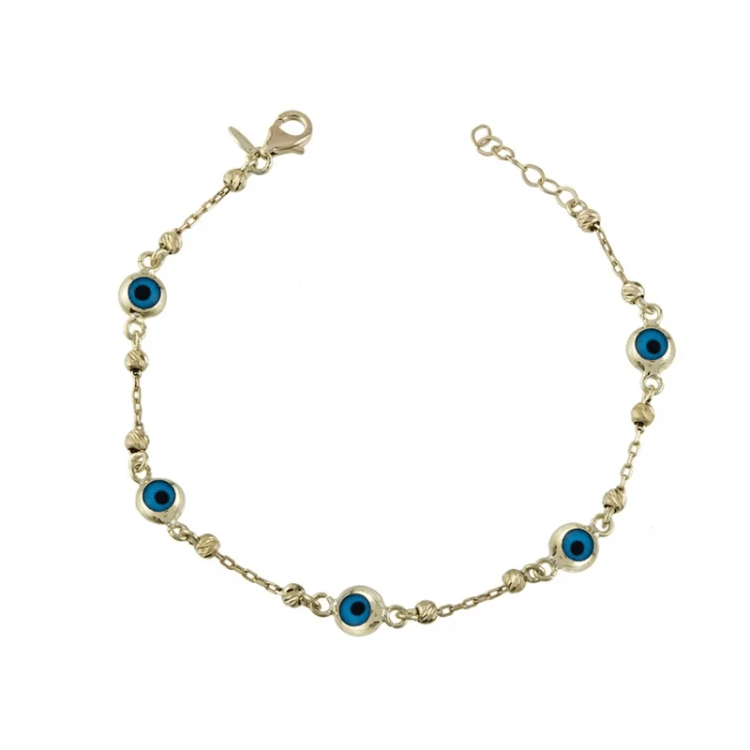 Altın Bileklik Modelleri modellerinden Altın Göz Boncuklu Zincirli Bileklik ürünümüz, 4.36 gr ağırlığında 14 Ayar Altın.