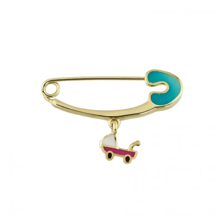 Altın Çocuk Takıları modellerinden Altın İğne Bebek Arabası Turkuaz ürünümüz,