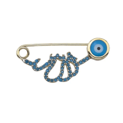 Altın Çocuk Takıları modellerinden Altın Mavi Taşlı Göz Yaka İğne ürünümüz,
