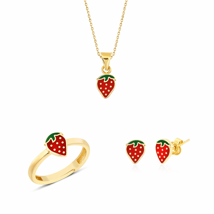 Altın Çocuk Takıları modellerinden Altın Mineli Çocuk Takımı Çilek Kırmızı ürünümüz,