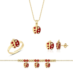 Altın Çocuk Takıları modellerinden Altın Mineli Çocuk Takımı Elma Kırmızı ürünümüz,