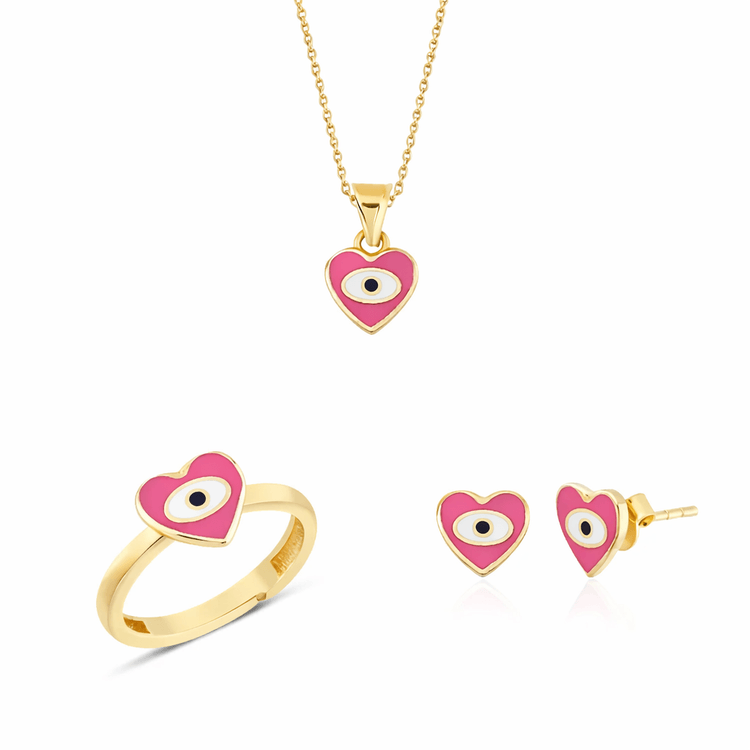 Altın Çocuk Takıları modellerinden Altın Mineli Çocuk Takımı Kalp Pembe ürünümüz,