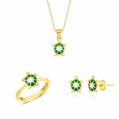 Altın Çocuk Takıları modellerinden Altın Mineli Çocuk Takımı Kaplumbağa Yeşil ürünümüz,