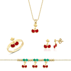 Altın Çocuk Takıları modellerinden Altın Mineli Çocuk Takımı Kiraz Kırmızı ürünümüz,