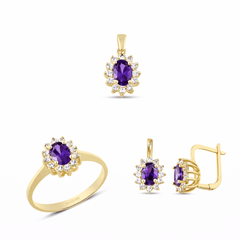 Taşlı Üçlü Set Takım Modelleri modellerinden Altın Mor Oval Taşlı Üçlü Takım ürünümüz,