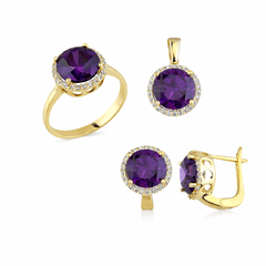 Taşlı Üçlü Set Takım Modelleri modellerinden Altın Mor Yuvarlak Taşlı Üçlü Takım ürünümüz, 10.40 gr ağırlığında 14 Ayar Altın.