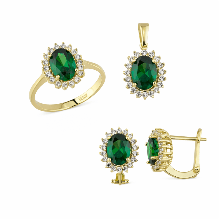 Taşlı Üçlü Set Takım Modelleri modellerinden Altın Oval Yeşil Üçlü Takım ürünümüz,