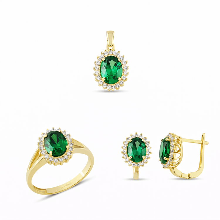 Taşlı Üçlü Set Takım Modelleri modellerinden Altın Oval Zümrüt Yeşili Takım ürünümüz,