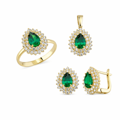 Taşlı Üçlü Set Takım Modelleri modellerinden Altın Takım Yeşil Damla Çift Sıra ürünümüz, 7.44 gr ağırlığında 14 Ayar Altın.